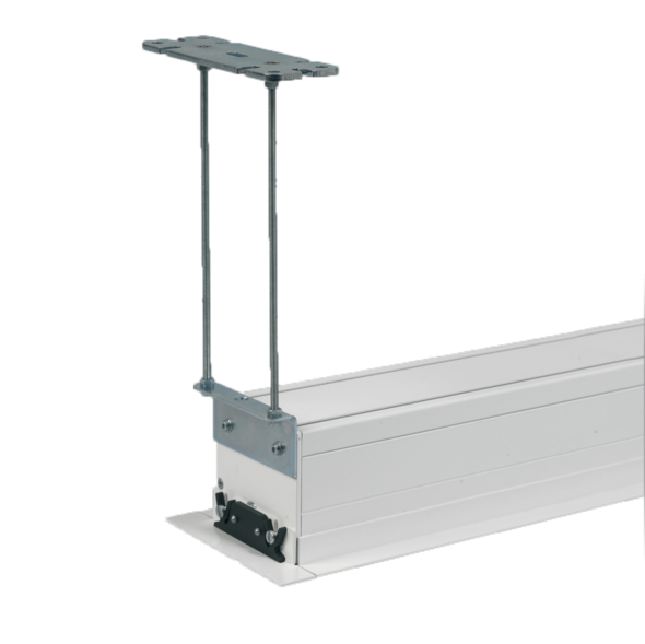 Casing profile incl. ceiling integration frame and clips brackets for suspended ceilings. This version of casing is only for use with suspended ceilings.