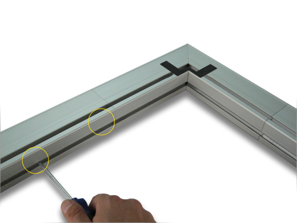The core of a Fullwhite® projection screen is its uniquely shaped frame profile. One side of the profile is skewed to the rear side of the screen by 45 degrees which leads to Fullwhite®’s features: A frame which is not visible even when seen slightly from the side.