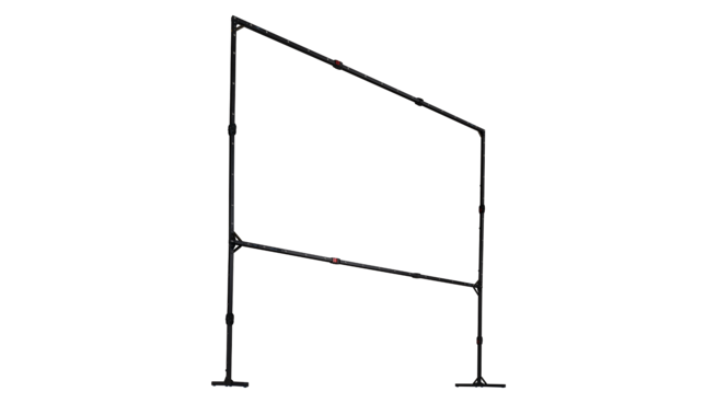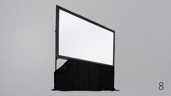 High precision extruded aluminum profiles and snap joints define the skeleton of the projection screen. The entire frame block unfolds and the snap joints lock automatically. No parts can get lost and set up is intuitive.