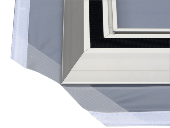 Inviframe systems come standard with velcro tape for easily mounting different types of cloth or (printed) surface materials.