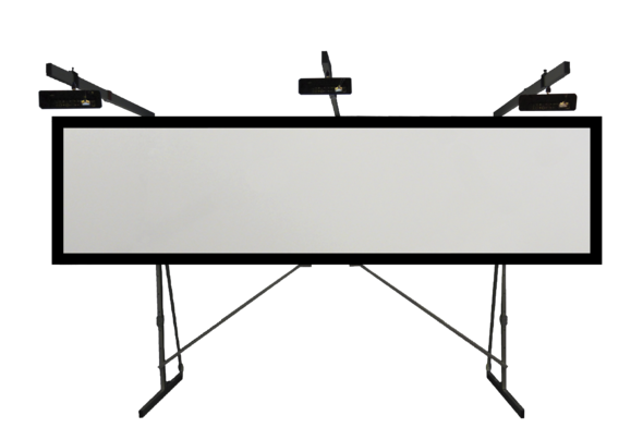 Which ways do you know to bring the projector into the proper position in front of the projection screen? Now there is definitely a new way to do so: A mounting solution to directly attach the projector to the projection screen. Desertscreen is a development based on our Monoblox®64 product featuring the same high precision automatic snap joints and is available in various standard sizes but we are happy to manufacture a Desertscreen with your custom dimensions as well. One or multiple projector mounts can be attached directly to the projection screen which eliminates the need for a dedicated projector stand.