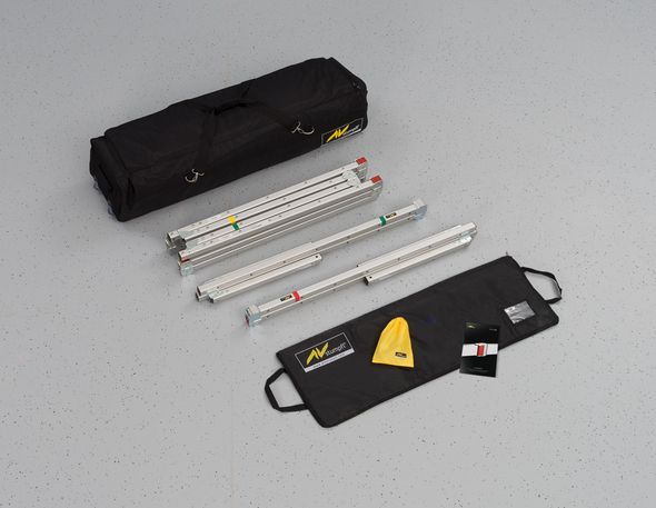 High precision extruded aluminum profiles and snap joints define the skeleton of the projection screen. The entire frame block unfolds and the snap joints lock automatically. No parts can get lost and set up is intuitive.