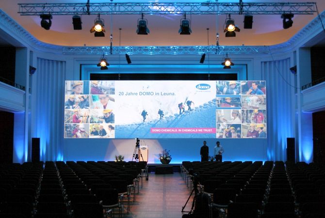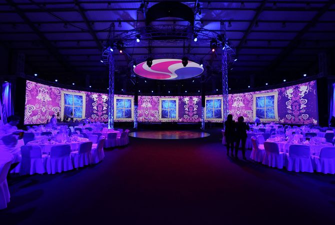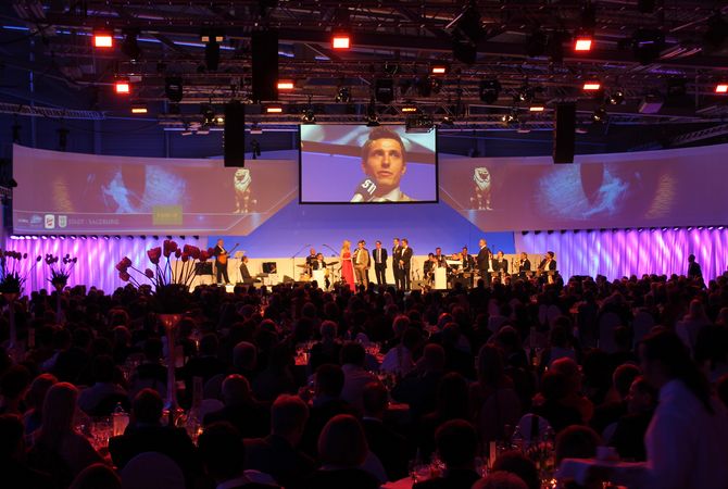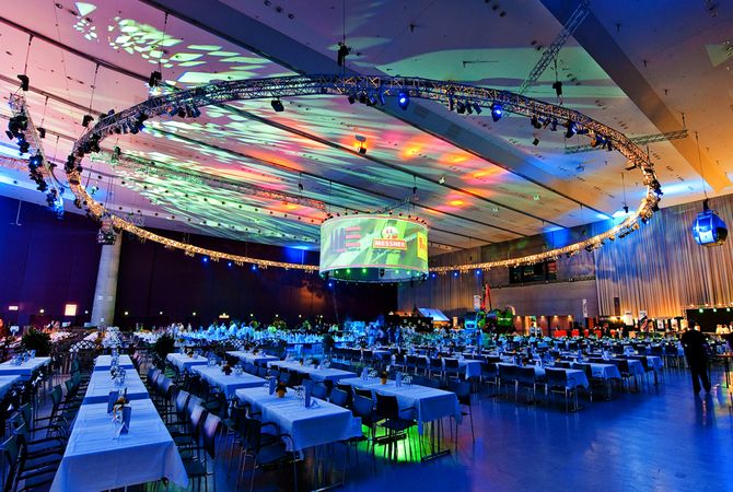 Three big FullWhite projection screens with 12,45 m x 7 m each impressed the visitors of the Press ball in the Big Box in Kempten, Germany.