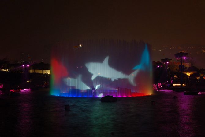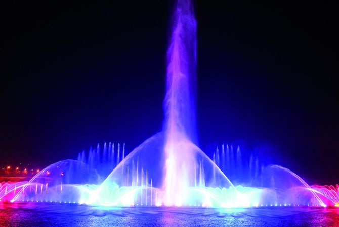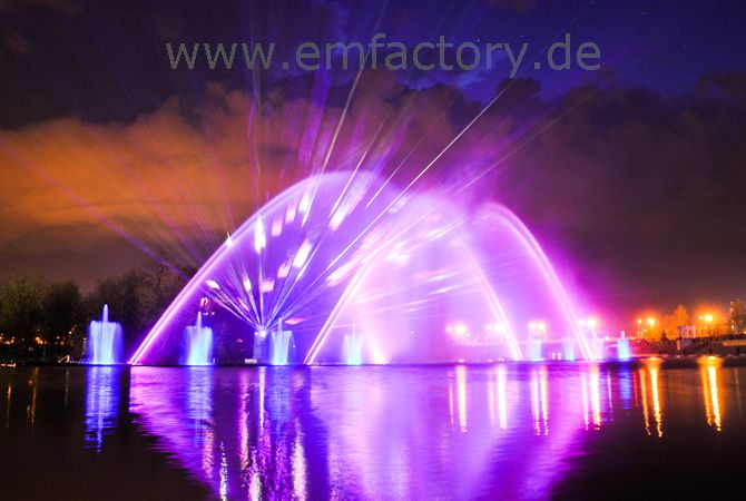 Emotion Media Factory Laserland (EMF) completes Europe’s largest floating fountain system in the Ukranian city of Vinnitsa for the Roshen Confectionery Group.