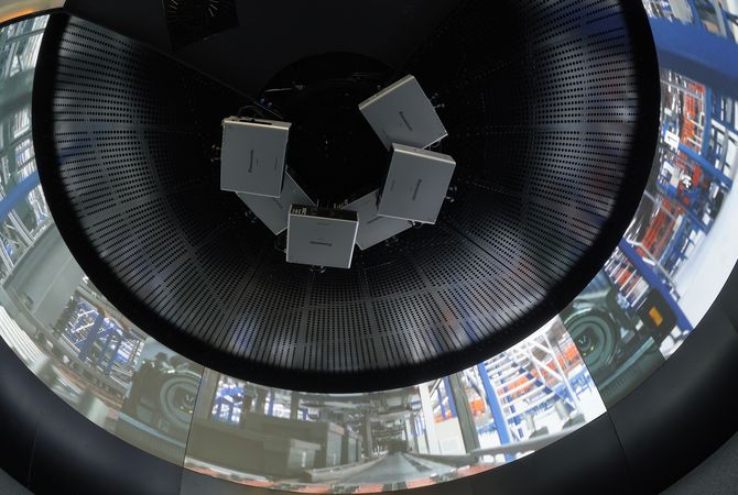 The worldwide leading logistics company KNAPP from Graz asssigned Scenomedia with the design of a 270° projection for a special installation in their newly build headquarters in Hart near Graz.