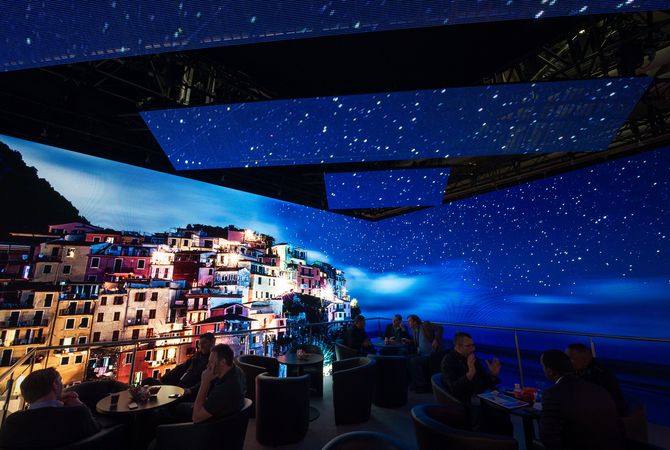 In the cruise ship "Mein Schiff 1" from TuiCruises numerous visualizations were implemented with technology from AV Stumpfl.