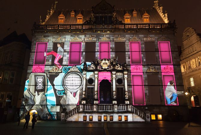 Strictest secrecy was observed in preparing the building projection for the 100th anniversary of the university for architecture. The greater was the surprise of the audience when the old building suddenly started to transform.