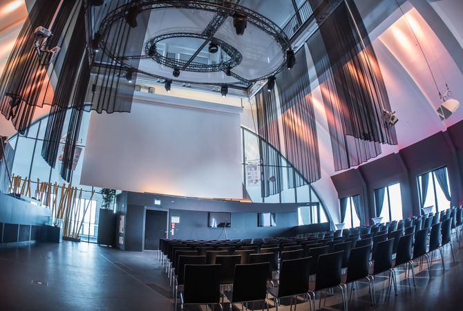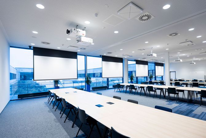 edelmat. GmbH recently installed AV Stumpfl INLINE roll-up screens for a multifunctional meeting room in Berlin.