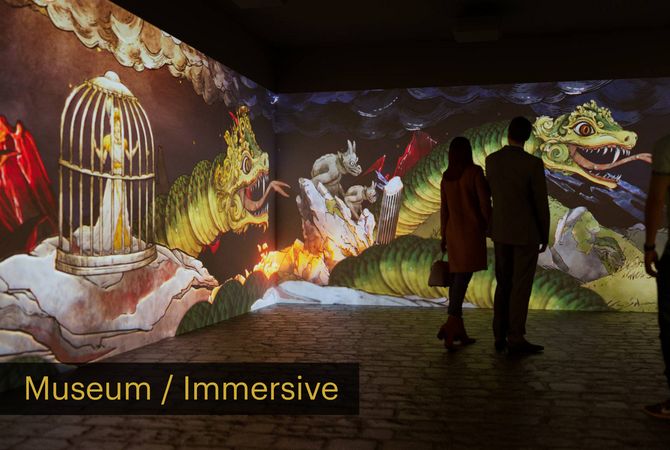 At the Integrated Systems Europe (ISE) trade fair in Barcelona in 2022, the award winning company Exhibition Hub curated a spectacular art installation, that combined several of its immersive art experiences.